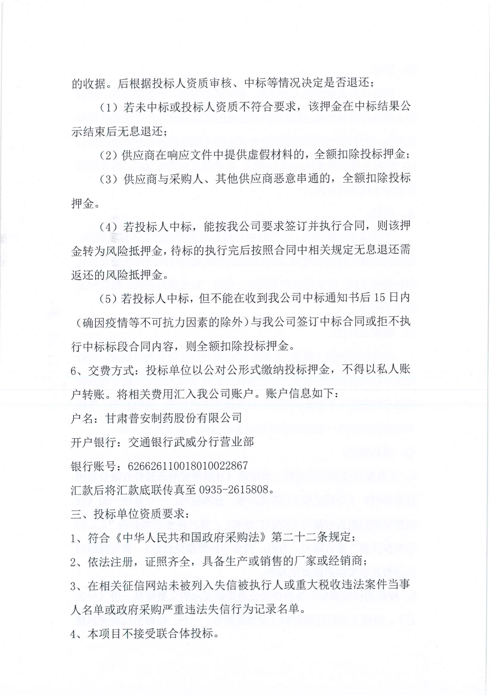 甘肅普安制藥股份有限公司2023年宣肺止嗽合劑物料(蜂蜜、乙醇)招標(biāo)采購公告