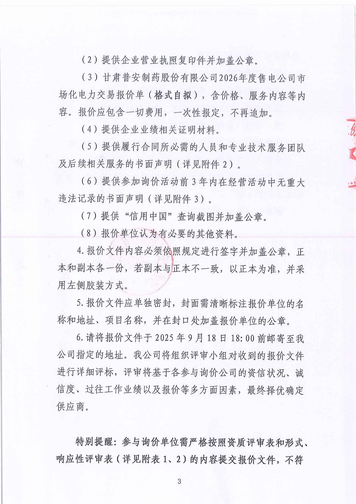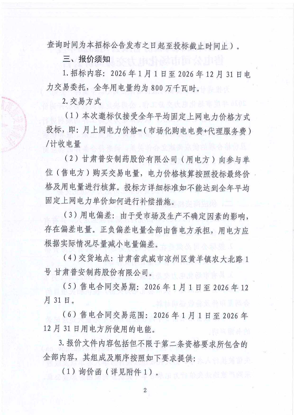 甘肅普安制藥股份有限公司2026年度售電公司市場化電力交易詢價公告