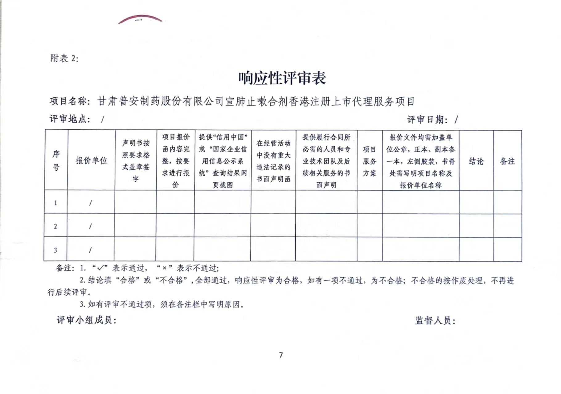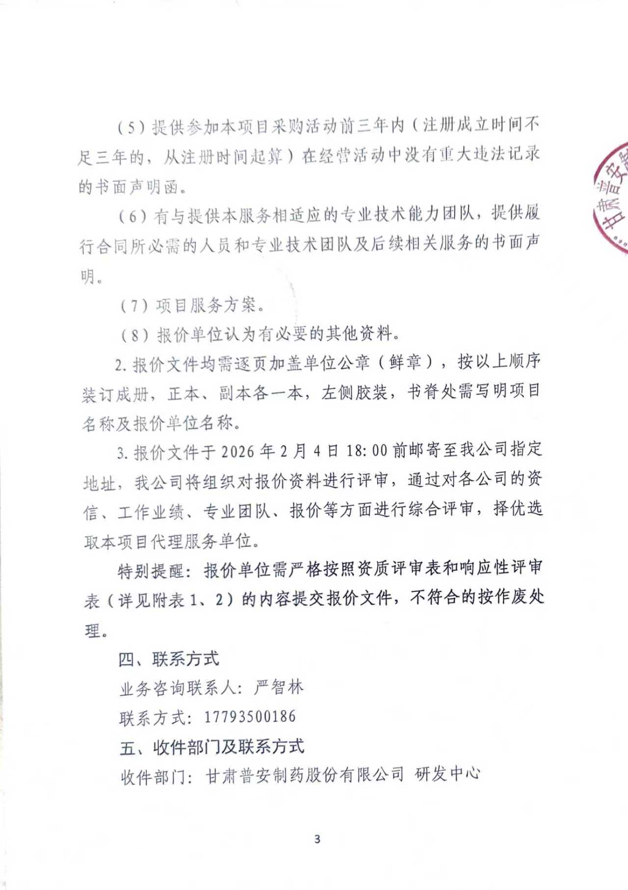 甘肅普安制藥股份有限公司宣肺止嗽合劑香港注冊上市代理服務機構選擇詢比價公告